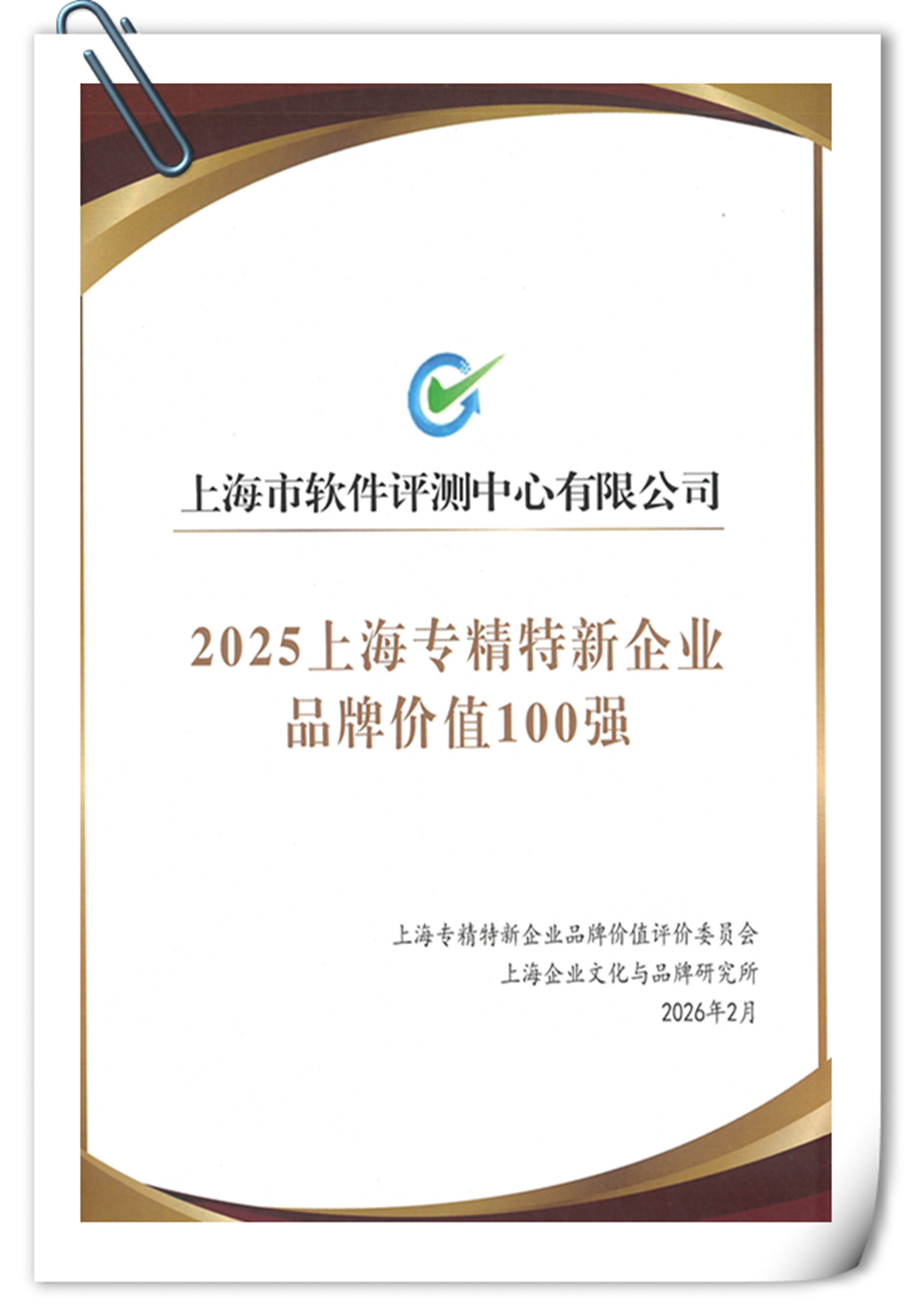 近日,由上海市经济和信息化委员会、上海市黄浦区人民政府指导,上海市中小企业发展服务中心联合上海市黄浦区商务委员会等单位共同发布的2025 上海专精特新企业品牌价值 100 强榜单正式揭晓。上海市软件评测中心凭借在软件信息技术服务领域的技术硬实力、品牌影响力与市场认可度成功上榜,充分展现了评测中心在专精特新发展道路上的综合实力与品牌优势。