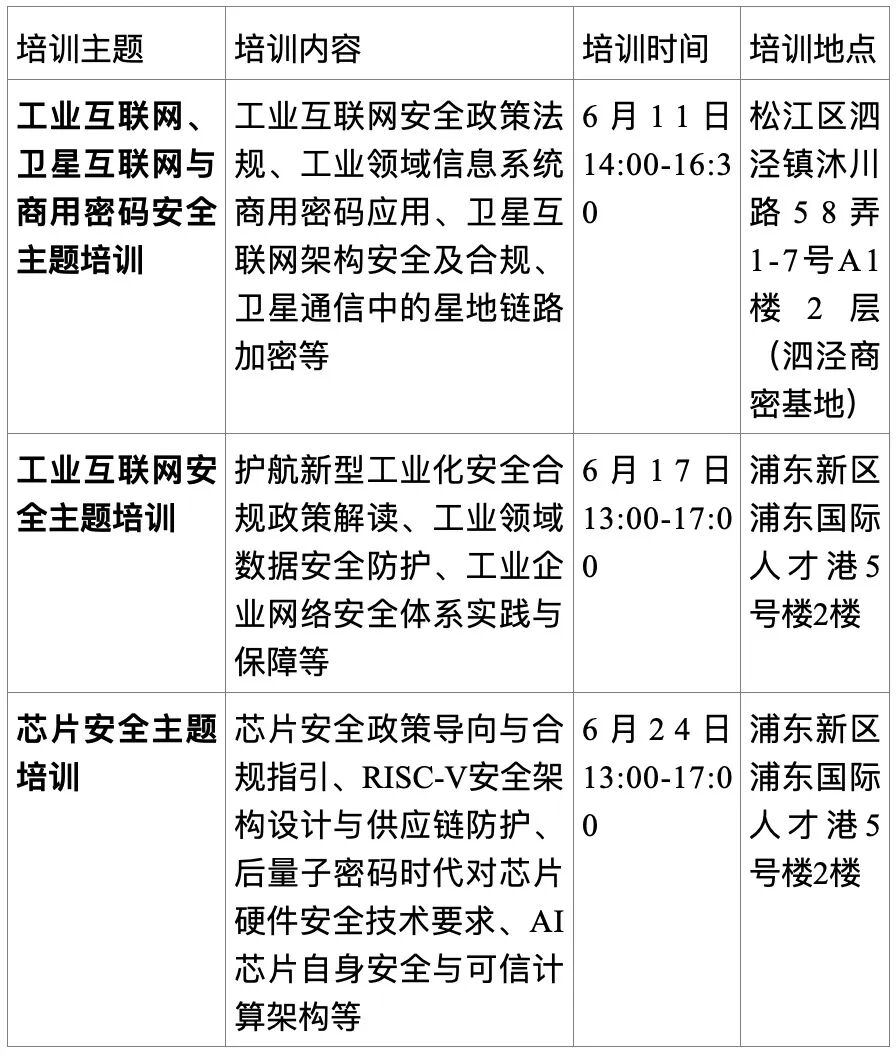 1、安全主题培训。于6月11日至7月4日组织开展专业领域安全主题培训系列活动,共分工业互联网卫星互联网与商用密码安全、工业互联网安全、芯片安全、数字安全、人工智能安全、软件供应链安全6个专场,每场覆盖安全分类分级管理、网络和数据安全管理等政策规范、新兴行业安全合规指引、安全技术研讨、案例分享等主题。
