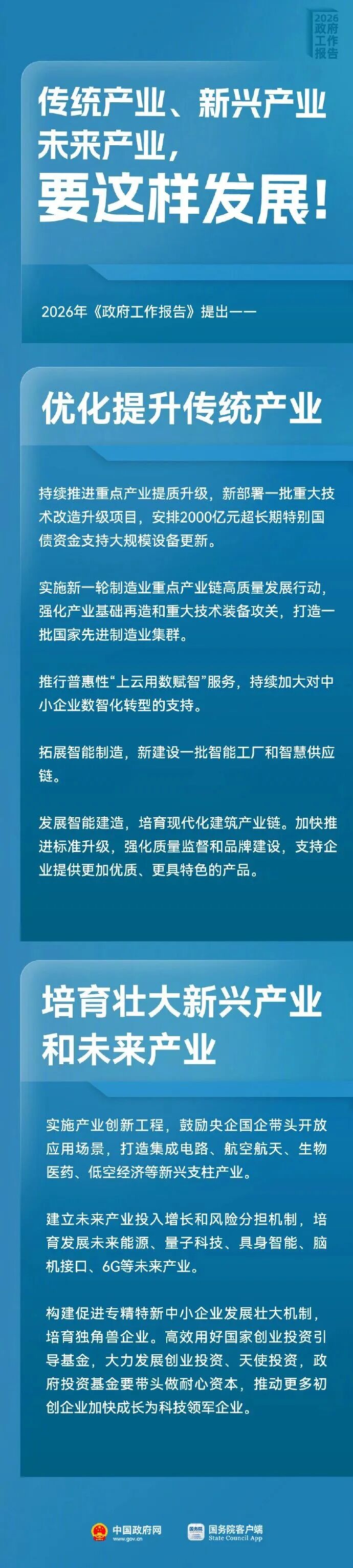 2026政府工作报告:传统产业、新兴产业、未来产业,要这样发展!
